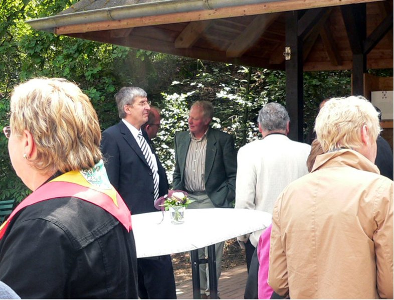 Bernd Carsten Hiebing (links), MdL Niedersachsen, im Gespräch über Kultur in Ahmsen mit Hermann Lüken, Ratsherr der Gemeinde Lähden